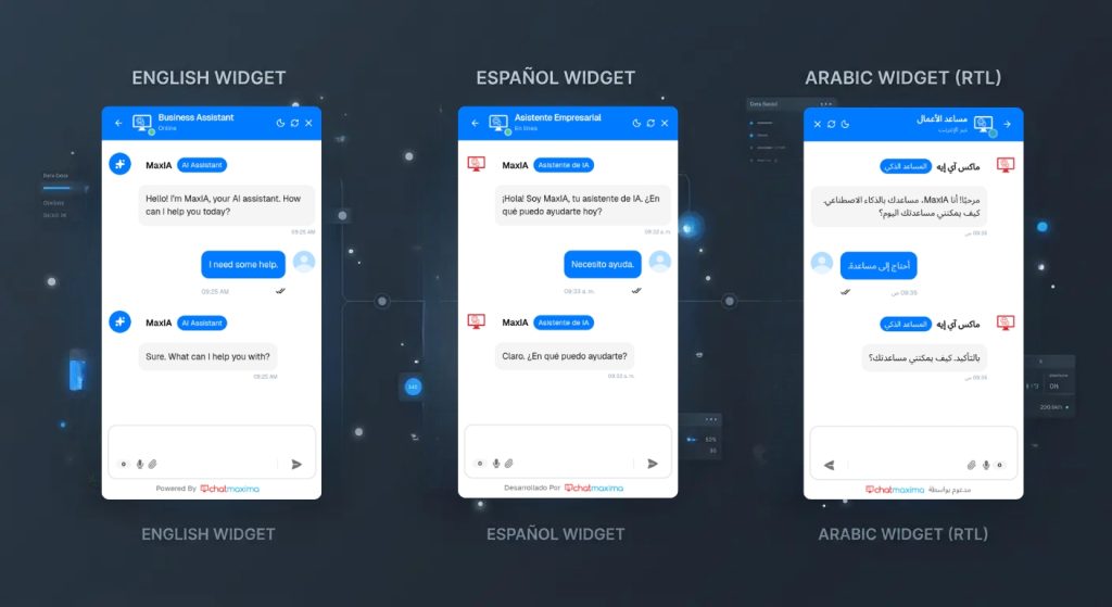 Government and financial institutions in the Gulf states have particularly strict requirements around language quality. A poorly localized Arabic chatbot can damage brand perception in ways that go beyond customer support metrics. ChatMaxima’s native RTL implementation ensures the widget meets the standard these organizations require.