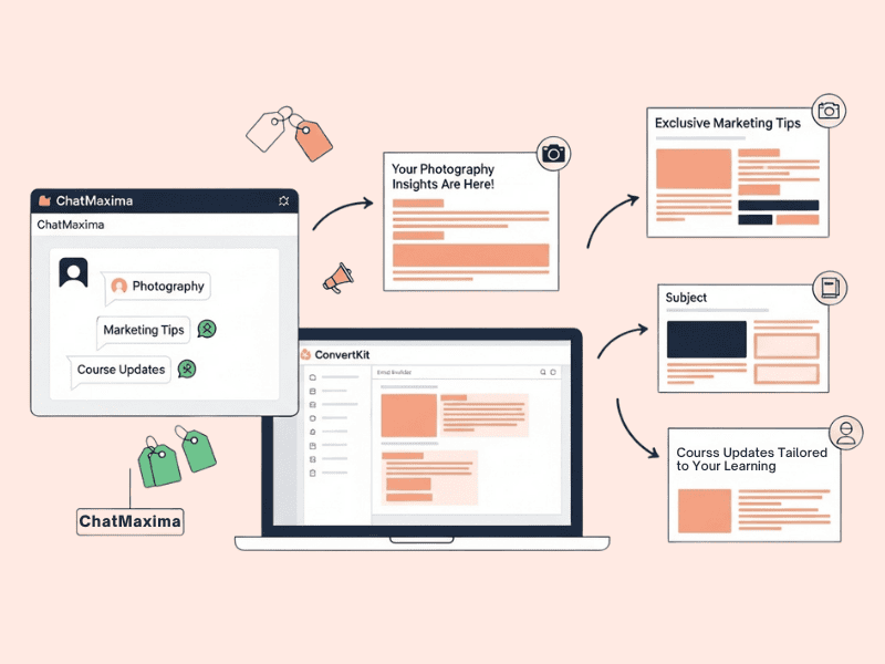 Use ChatMaxima chatbots to collect data points like customer interests or purchase intents, and sync them with ConvertKit. Create customized email sequences that nurture prospects and guide them closer to making a purchase decision, effectively automating your lead nurturing process.