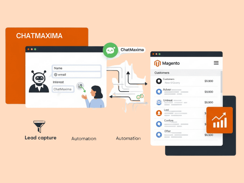 Capture and nurture leads through ChatMaxima's AI-driven conversations, seamlessly transferring them to Magento's customer database. This automation minimizes manual effort, reduces errors, and accelerates sales growth.