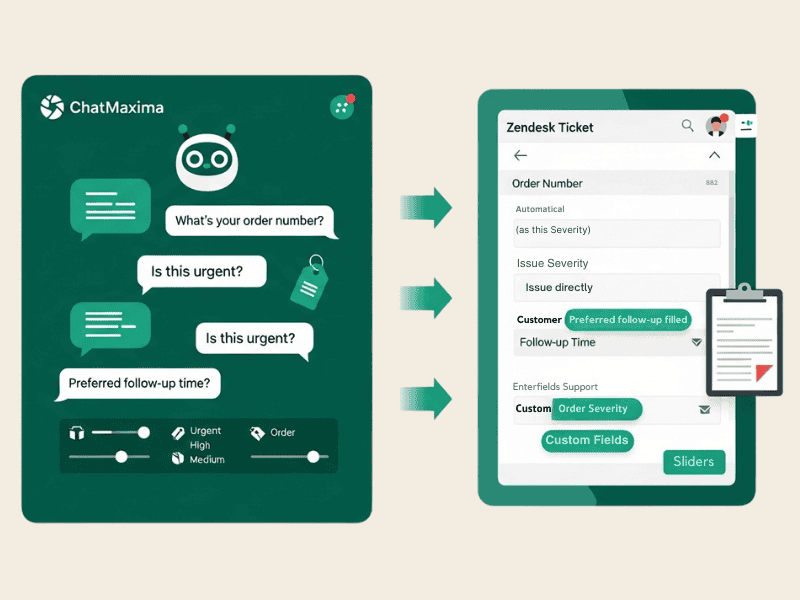 Tailor your chatbot conversations to collect essential customer details—like order information, issue severity, or follow-up preferences—and have them reflected within Zendesk. This customization ensures your support operations cater directly to business goals.